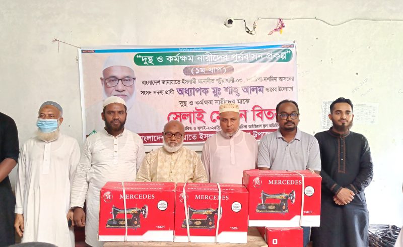 দুস্থ ও কর্মক্ষম নারীদের সেলাই মেশিন দিলো জামায়াত প্রার্থী অধ্যাপক শাহ আলম