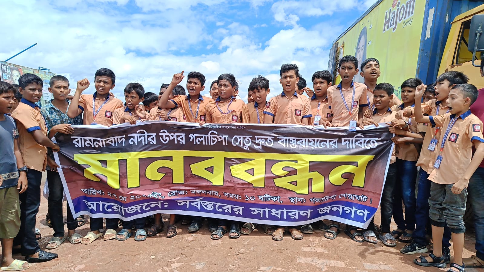 গলাচিপায় রামনাবাদ নদীতে সেতু নির্মাণের দাবিতে মানববন্ধন