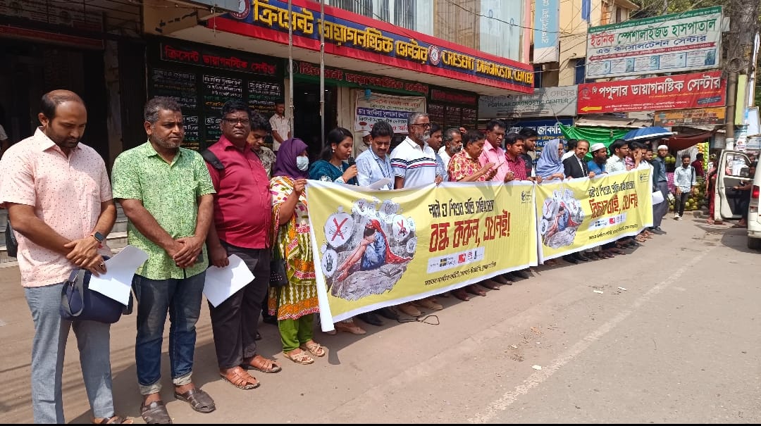 নারীর প্রতি সহিংসতার প্রতিবাদে ব্রাহ্মণবাড়িয়ায় মানববন্ধন
