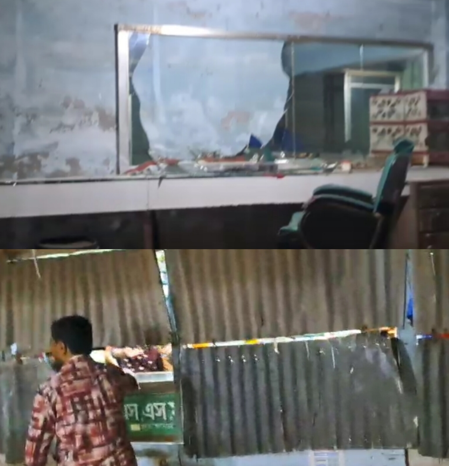 নেছারাবাদের নান্দুহার বাজারে তুচ্ছ ঘটনায় ব্যবসা প্রতিষ্ঠানে হামলা ও ভাংচুর।