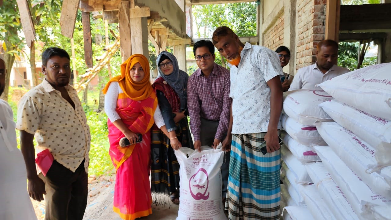 বন্যায় ক্ষতিগ্রস্থ ব্রাহ্মণবাড়িয়া আখাউড়ার ৩৫ জন মৎস্য চাষীকে প্রণোদনার অংশ হিসেবে বিনামূল্যে মাছের খাবার দেওয়া হয়েছে। সোমবার দুপুর উপজেলা মৎস্য কার্যালয়ের সামনে চাষীদের প্রত্যেককে ১০০ কেজি করে মাছের খাবার দেওয়া হয়।