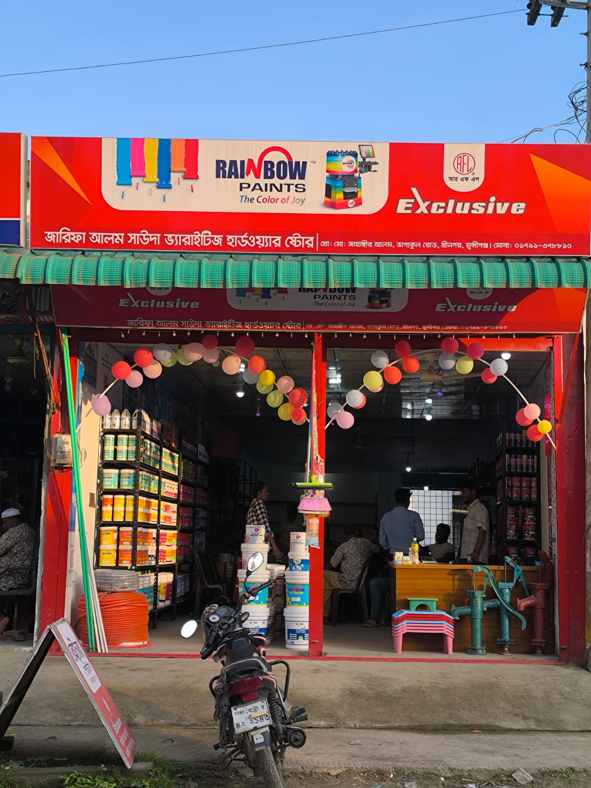 এ সময় উপস্থিত ছিলেন, কোম্পানির পক্ষে সুমন, স্থানীয় গন্যমান্য প্রমূখ। জারিফা আলম সাউদার প্রোপাইটর জাহাঙ্গীর আলম তিনি বলেন, এখানে আরএফএল কোম্পানির রেইনবো ব্র্যান্ডের সকল প্রকার রং খুচরা ও পাইকারি সুলভ মূল্যে পাওয়া যায়। আপনারা রেইনবো ব্র্যান্ডের রং অন্যত্র থেকে ক্রয় করে প্রতারিত হবেন না সরাসরি এখানে যোগাযোগ করবেন।